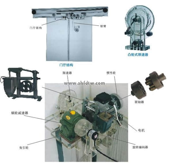 1、機(jī)房部分:包括曳引減速機(jī)、曳引電動(dòng)機(jī)、制動(dòng)器、曳引輪、旋轉(zhuǎn)編碼器;